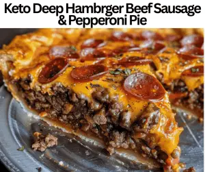 This keto deep hamburger Beef Sausage & Pepperoni Pie is the perfect comfort food for anyone on a low-carb diet. We cook the layers of Italian sausage, pepperoni, & seasoned minced beef under a golden, cheesy crust to create this hearty, savory dish. The pie has a delicious, custard-like texture that melts in the mouth because of the heavy cream & creamy egg base that ties everything together. It tastes like deep-dish pizza every bite, but without the guilt or the carbohydrates. You can alter it by including low-carb veggies like bell peppers, spinach, or mushrooms for added taste. Serve this keto deep hamburger Beef Sausage & Pepperoni Pie hot with some roasted vegetables or a crisp side salad for a tasty and well-balanced keto meal.