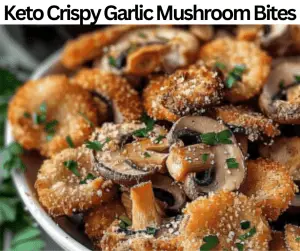 Keto Crispy Garlic Mushroom Bites are a tasty and crispy snack that is low in carbohydrates and feels decadent. Combine almond flour, Parmesan cheese, and garlic seasoning to cover each bite-sized mushroom, which is then baked or air-fried until golden brown. As a result, these bites have a crispy outside and a juicy, delicate inside that makes them both gratifying and irresistible. Serve it with ranch, garlic aioli, or a hot keto marinara for dipping. These Crispy Garlic Mushroom Bites prove that flavor and crunch that we don’t have to sacrifice when following a low-carb diet.