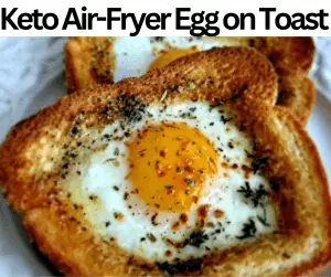 This Keto Air-Fryer Egg on Toast has an indulgent taste and nutritious fats. We prepare these toasts with cheddar cheese, black pepper, salt, butter, keto bread, olive oil, egg, chili flakes, and herbs. This toast contains 280 calories and 4 grams of net carbs. We make this toast in just thirteen minutes. This Keto Air-Fryer Egg on Toast is perfect for appetizers, busy days, breakfasts, occasions, lunches, friends’ gatherings, events, functions, sides, brunches, and dinners. Since the texture of the egg will alter, we do not advise freezing this toast. But you can prepare it earlier, as it refrigerates perfectly for twenty-four hours. You can serve this toast with Crispy Bacon Strips, Cream Cheese Spread, Cherry Tomato Halves, Fried Halloumi, Keto Hot Sauce, or Mixed Greens Salad.