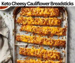Keto Cheesy Cauliflower Breadsticks are a traditional comfort food staple in a low-carb way. Make these tasty, filling, and grain-free breadsticks with cauliflower rice, eggs, and two kinds of cheese. Cook the cauliflower, then drain it, and combine with seasonings to create a crust that bakes till golden brown. Then layer a thick coating of mozzarella on top, giving breadsticks their enticingly cheesy, melty finish. These Keto Cheesy Cauliflower Breadsticks go well with your favorite keto dip or a side of marinara since each bite is bursting with Italian herbs and garlic. Furthermore, they are sufficiently robust to serve with salads, soups, or main courses without crumbling.