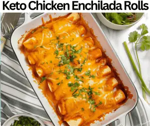 Keto Chicken Enchilada Rolls are a tasty, low-carb take on classic enchiladas. A creamy, cheesy mixture consisting of cream cheese, cheddar, mozzarella, and green chilies rolled in thin slices of seasoned chicken instead of tortillas. Sear the rolls for flavor and cook the rolls in a smoky enchilada sauce till they are soft and bubbling. Each mouthful offers the traditional enchilada flavor: creamy, spicy, and filling without the carbohydrates. Additionally, Keto Chicken Enchilada Rolls are customizable with your own toppings, such as extra cheese, avocado, or sour cream. It provides all the comfort and flavor of Mexican food while keeping your macros under control.