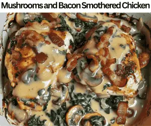 Keto Chicken Smothered is a flavorful dish. It has low carb content with just 4g net carbs per serving. This dish is prepared with heavy cream, bacon, chicken breast, mushrooms, cheese, and onions. These simple ingredients are easily available in any grocery store or pantry. Keto Chicken Smothered takes only 35 minutes, so it is perfect for busy days. This dish stores easily for 2 months, so it’s perfect for meal prep purposes as well. It has high fat and protein content, which helps us to remain full, and it is also good for a keto diet. Serve this dish with sautéed spinach, cauliflower mash, or zoodles for a filling dinner.