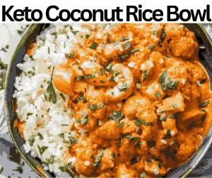 Keto Coconut Rice Bowl is a creamy and flavorful dish without adding carb count. It has a fluffy base and an aromatic taste of coconut milk. This dish is best for preparing a quick supper meal. We cook this rice by using different types of ingredients such as coconut oil, ginger, riced cauliflower, toppings, coconut milk, and proteins. These components are simply accessible in supermarkets and in the pantry. Keto Coconut Rice Bowl is a non-dairy recipe. We store the cooked cauliflower rice in a closed vessel for 20-30 days in the freezer. This rice has 6 g of net carbs and 30 g of fat in a single serving. This dish cooks properly in only twenty to twenty-five minutes. This meal is ideal for weekdays, lunch, and family gatherings.