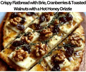 This Keto Crispy Flatbread with Brie Cranberries & Toasted Walnuts with a Hot Honey Drizzle has crunchy nuts and a crispy foundation. We prepare this flatbread with mozzarella cheese, coconut flour, baking powder, salt, cream cheese, egg, almond flour, keto honey substitute, cranberry essence, olive oil, walnuts, brie cheese, chili flakes, and butter. This flatbread contains 320 calories and five grams of net carbs. We make this flatbread in only thirty-five minutes. Store this Keto Crispy Flatbread with Brie Cranberries & Toasted Walnuts with a Hot Honey Drizzle in a freezer for almost thirty days. You can store this flatbread with Goat Cheese Medallions, Mixed Green Walnut Salad, Herb Roasted Turkey, Cheese Board, Roasted Brussels Sprouts, Almond Butter Drizzle, or Lemon Mint Sparkler.