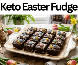 This Keto Easter Fudge has a strong taste and a silky texture. We prepare this fudge with keto white chocolate chips, unsalted butter, heavy cream, keto dark chocolate chips, vanilla extract, powdered erythritol, almond flour, crushed keto chocolate candies, sea salt, and keto sprinkles. This fudge contains 160 calories and two g of net carbs. You can make this fudge earlier, as we store it in the freezer for only 60 days. This Keto Easter Fudge is perfect for desserts, dinners, parties, breakfasts, festivities, occasions, celebrations, and special events. You can serve this fudge with keto chocolate fat bombs, keto bulletproof coffee, or keto chocolate chip mug cake.