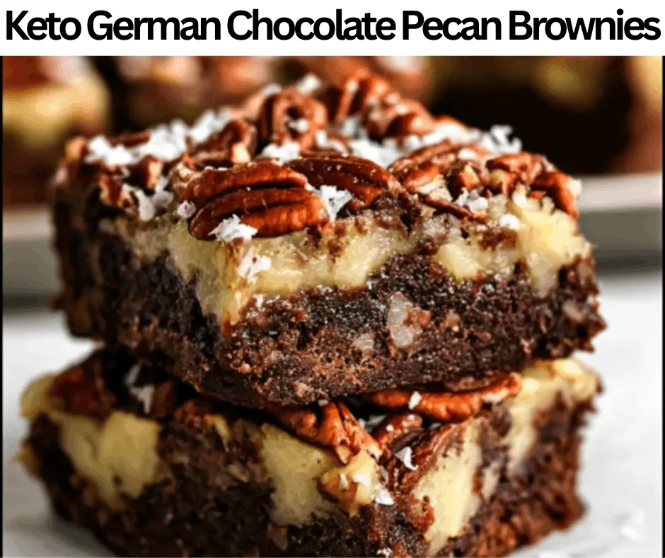 These Keto German Chocolate Pecan Brownies are a flavorful dessert. We prepare this cocoa powder, erythritol powder, almond flour, butter, vanilla extract, coconut flour, eggs, baking powder, pecans, salt, heavy cream, and keto shredded coconut. These are the standard products found in our kitchen cupboards, although your kitchen pantry may not contain them. You could simply get all the necessary ingredients from the food markets. These brownies contain 320 calories and four g of net carbs. We make these brownies in almost 50 minutes. These Keto German Chocolate Pecan Brownies are great for appetizers, occasions, breakfasts, events, lunches, parties, dinners, and desserts. We can make these brownies a day before, as they store perfectly in the freezer for almost three months. Serve these pecan brownies with almond milk, vanilla ice cream, cream cheese frosting, or strawberries.