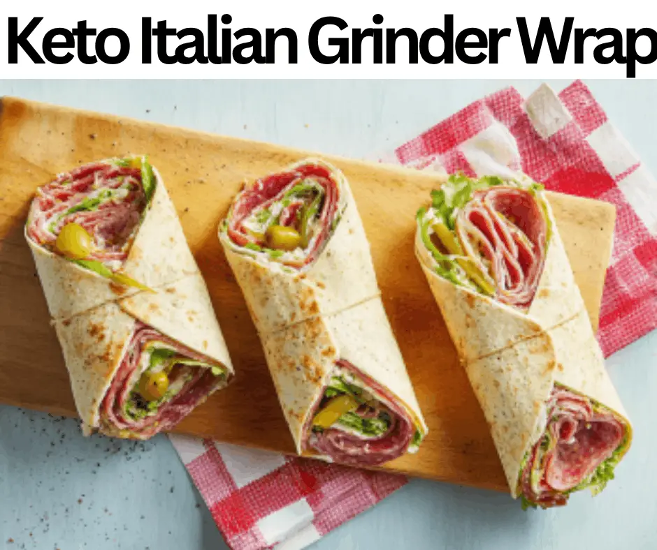 This Keto Italian Grinder Wrap has a savory taste & texture that is creamy. We prepare this wrap with salami, iceberg lettuce, keto tortillas, red onions, provolone cheese, olive oil, turkey breast, black pepper, pepperoni, red wine vinegar, salt, garlic powder, tomatoes, olives, oregano, mayonnaise, and banana peppers. This wrap contains 420 calories and five grams of net carbs. We make this wrap in only 15 minutes. This Keto Italian Grinder Wrap is excellent for starters, busy days, parties, breakfasts, special functions, lunches, short events, family occasions, get-togethers, and dinners. We don’t keep them, as the wraps and vegetables will lose their texture and may get mushy after defrosting. But you can prepare it earlier, as this wrap refrigerates for just two days. You can serve this wrap with Cauliflower Salad, Keto Tomato Basil Soup, Lemon Infused Water, or Avocado Slices.