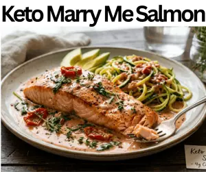 This Keto Marry Me Salmon has a silky texture and an indulgent taste. We prepare this Salmon with Parmesan cheese, thyme, salmon fillets, heavy cream, garlic, olive oil, red chili flakes, tomatoes, oregano, black pepper, butter, salt, and spinach. This salmon contains 480 calories and four grams of net carbs. We require half an hour to make this salmon. This Keto Marry Me Salmon is great for appetizers, parties, celebrations, dinners, breakfasts, sides, and lunches. We store this baked salmon in a freezer for nearly 50-60 days, so you can prepare this salmon earlier. You can serve this salmon with garlic butter zucchini noodles, avocado, cucumber, or shirataki noodles.