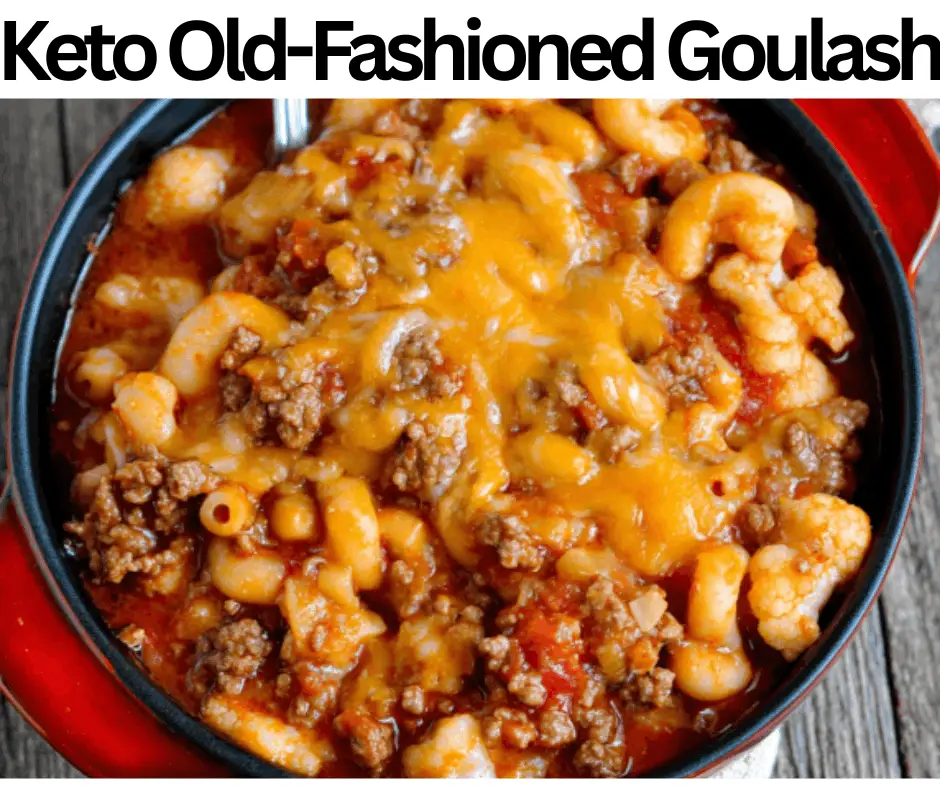 This Keto Old-fashioned Goulash has aromatic spices and robust tomato-based sauce. We prepare this goulash with keto tomato sauce, Italian seasoning, onion, black pepper, tomato paste, ground beef, salt, shredded cheddar cheese, cauliflower florets, olive oil, beef broth, garlic, paprika, red chili flakes, and butter. This goulash contains 320 calories and six g of net carbs. We make this goulash in only thirty-five minutes. This Keto Old-fashioned Goulash is perfect for starters, events, parties, lunches, get-togethers, activities, celebrations, occasions, dinners, morning breakfasts, parties, and busy days. We store this goulash in a freezer for almost two months, so you can prepare it earlier. You can serve this goulash with Keto Cheddar Chive Scones, Cucumber Avocado Salad, Extra Melted Cheese, Keto Greek Salad, or Keto Mac and Cheese.