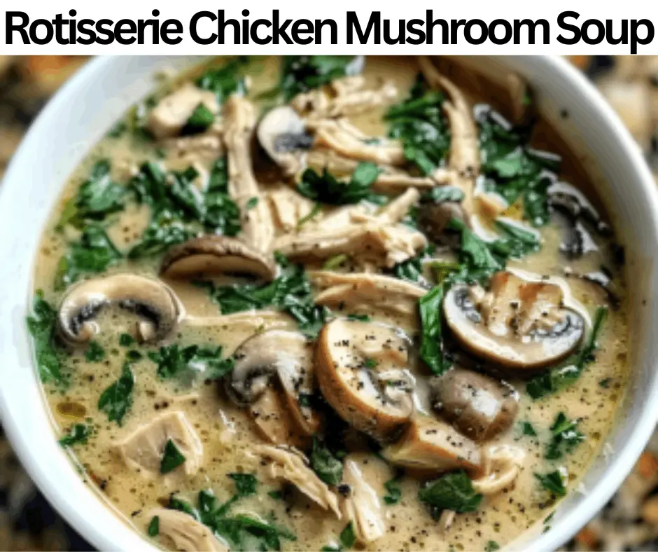 Keto Rotisserie Chicken Mushroom Soup contains a rich and creamy taste with a low-carb count. We make this mushroom soup with many ingredients and veggies, such as rotisserie chicken, garlic, mushrooms, salt, heavy cream, thyme, chicken broth, butter, olive oil, onion, parsley, and black pepper. This dish contains 5 g of net carbs and 320 kcal of calories in 1½ cups of a portion. We can completely cook this soup in almost forty minutes. This soup stores in the freezer for 50-60 days, and is also perfect for meal prep. Keto Rotisserie Chicken Mushroom Soup is great for warm lunches, gatherings, meals, parties, and dinners. This contains dairy ingredients such as heavy cream and butter, so we can use vegan products to make it non-dairy. So this meal will be good for dairy-allergic people. Serve it with the almond flour biscuits, crispy bacon crumbles, zucchini noodles, or keto coleslaw.