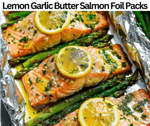 The Keto Salmon Foil Packs with lemon garlic butter are a flavorful and easy low-carb meal choice. Each foil pack contains a salmon fillet with fresh veggies, such as asparagus and zucchini, and top it with a zesty lemon squeeze and a flavorful garlic butter sauce. The salmon cooks evenly and remains moist because of the foil wrapping, which also allows the vegetables to absorb the buttery, zesty tastes. This method of Keto Salmon Foil Packs with lemon garlic butter makes cleanup simple and the meal adaptable because you can substitute additional keto-friendly vegetables like bell peppers, broccoli, or mushrooms.