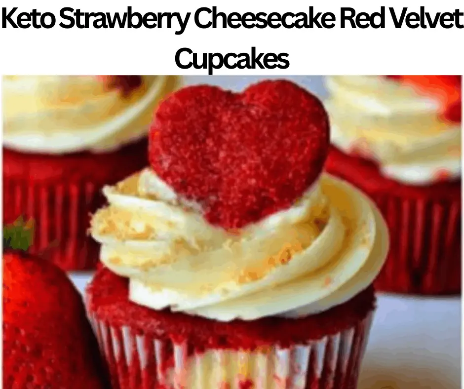 These Keto Strawberry Cheesecake Red Velvet Cupcakes are a delicious meal. We prepare these cupcakes with erythritol powder, butter, almond flour, baking powder, cocoa powder, vanilla extract, lemon juice, egg, cream cheese, and red food coloring. Maybe these few components are already in your pantry. But some of those will not be present, so you can get them from shops. We need almost forty minutes to make these cupcakes. These cupcakes contain four g of net carbs & 285 kcal. Keto Strawberry Cheesecake Red Velvet Cupcakes are ideal for brunches, parties, lunches, meals for special occasions, and desserts on the weekends. These cupcakes freeze properly for 30-60 days, so you can make them early. You can serve these cupcakes with a raspberry thumbprint cookie or keto bulletproof coffee.
