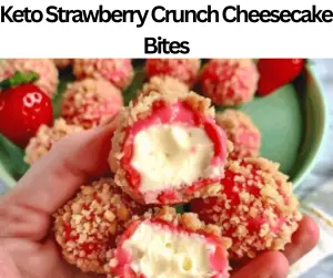 These Keto Strawberry Crunch Cheesecake Bites are a delicious dessert. We prepare these cheesecake bites with a few ingredients, such as erythritol powder, heavy whipping cream, strawberries, almond flour, vanilla extract, cream cheese, and butter. You can substitute non-dairy items in these cheesecake bites for dairy-sensitive people because they contain dairy ingredients. We make a crispy and crumbly crust with a crunchy topping. You must require at least 1 hour & 35 minutes to make these cheesecake bites. These Keto Strawberry Crunch Cheesecake Bites are great for breakfasts, appetizers, sides, occasions, and desserts. We refrigerate these cheesecake bites for five days; they also freeze perfectly, so they are perfect for a quick dessert meal. Serve these bites with vanilla whipped cream, a keto strawberry smoothie, or strawberry sauce.