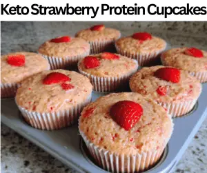 These Keto Strawberry Protein Cupcakes have a lightly sweet and moist texture. We prepare these protein cupcakes with coconut flour, unsweetened almond milk, baking powder, almond flour, strawberries, erythritol powder, salt, coconut oil, vanilla extract, eggs, and vanilla protein powder. These protein cupcakes contain 180 calories and four grams of net carbs. We make these protein cupcakes in just thirty-five minutes. These Keto Strawberry Protein Cupcakes are perfect for starters, holiday breakfasts, snacks, meal plans, festivities, brief events, activities, special parties, gatherings, dinners, & desserts. We store these protein cupcakes in a freezer for nearly 50-60 days, so you can prepare them earlier. You can serve these protein cupcakes with Greek Yogurt, Berry Compote, Coconut Chips, Black Coffee, or Crushed Pecans.
