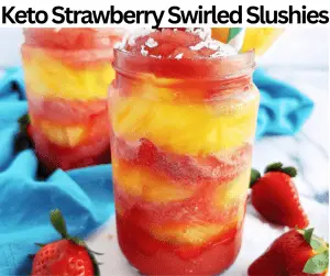 Pineapple-flavored Keto Strawberry Swirled Slushie is a cool way to savor tropical flavors without added sugar. This refreshing beverage strikes the ideal balance between fruitiness and coolness by combining the vibrant, sweet flavor of pineapple extract with juicy strawberries. It looks beautiful because of its swirl layers & delicious off course. This slushy contains lots of tropical sweet taste and tang. We make this Pineapple-flavored Keto Strawberry Swirled Slushie with only basic ingredients like crushed ice, Strawberry puree, pineapple essence, Erythritol, and almond milk. Garnish this slushy with coconut to make it more indulgent or enjoy it plain.
