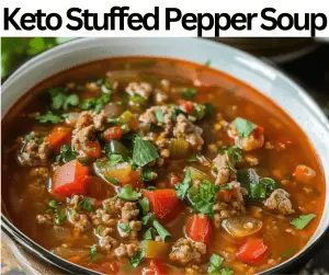 Keto Stuffed Pepper Soup is a savory and flavorful recipe with fewer carbs. Bell peppers add a sweet flavor, and tomatoes add a strong taste. This recipe contains spicy seasonings. All ingrdients combines easily in a big bowl. This soup makes the process easier while maintaining the flavor regular and tasty, in place of stuffing and baking peppers. This Keto Stuffed Pepper Soup is ideal for hectic weeknights and menu preparation. The broth contains a rich consistency, but it is not too heavy. It contains the strong flavors of savory ground beef. The vegetables have become tender, meat remains moist and delicious. Keto Stuffed Pepper Soup is a simple recipe you can easily make changes to. We can store this soup for three months in the freezer. This recipe takes only ten minutes to cook completely.