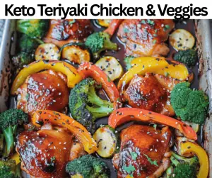 This tasty, low-carb Keto Teriyaki Chicken & Veggies is ideal for hectic weeknights. This recipe has a rich, sugar-free teriyaki sauce that coats a variety of colorful veggies, including bell peppers, zucchini, & broccoli, along with succulent chicken thighs. It fulfills your keto objectives while maintaining that traditional sweet-and-savory balance. We make the sauce with ginger, garlic, sesame oil, & soy sauce, thickens nicely with xanthan gum to give it a glossy finish. There is umami taste & a pleasing texture in every bite. You can serve this Keto Teriyaki Chicken & Veggies with shirataki noodles or cauliflower rice, or you can eat it by itself for a full ketogenic dinner.