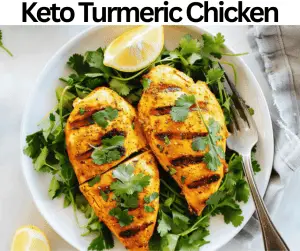 Keto Turmeric Chicken is a filling & nutritious meal. This dish is golden & aromatic. It creates a tasty dish by combining warm spices like paprika, cumin, & turmeric with succulent chicken breasts. Lemon juice enlivens each bite, while turmeric gives a delicate earthiness & brilliant color. This dish is rich in healthy fats & anti-inflammatory properties in addition to being simple to prepare. It has a strong flavor without the carbohydrates, whether you cook it dry in a skillet or add cream for a saucy variation. Serve this Keto Turmeric Chicken with green salad, roasted veggies, or cauliflower rice for a filling & tasty meal.