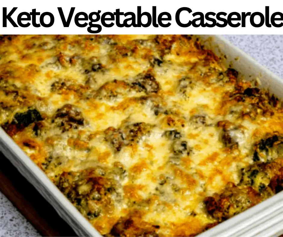 This Keto Vegetable Casserole has a savory binding sauce and delicious taste. We prepare this veggie casserole with broccoli florets, salt, cheddar cheese, zucchini, black pepper, bell peppers, mushrooms, cauliflower florets, mozzarella cheese, heavy cream, cream cheese, onion powder, eggs, olive oil, garlic, and Italian seasoning. This veggie casserole contains 280 calories and six grams of net carbs. We make this veggie casserole in almost fifty-five minutes. This Keto Vegetable Casserole is excellent for starters, lunches, get-togethers, parties, functions, dinners, hectic days, main courses, early meals, celebrations, occasions, and short events. We store this veggie casserole in a freezer for at least two months, so you can prepare it earlier. You can serve this veggie casserole with Roast Beef, Cheese Topping, Avocado Slices, or Cheese Sauce.