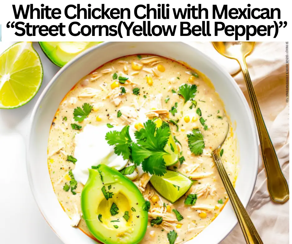 This Keto White Chicken Chili with Mexican street corn is a creamy, delicious take on a traditional comfort food. It contains shredded chicken, yellow bell pepper, green chilies, and powerful spices; each bite has the perfect blend of heat, acidity, and creaminess. The cream cheese, Monterey Jack, and sour cream provide a silky texture while keeping it keto-friendly and low in carbohydrates. Unlike conventional chili, this Keto White Chicken Chili with Mexican street corn omits the beans & corn and instead relies on yellow bell pepper and healthy, high-protein components. We top it with avocado, cilantro, and lime.
