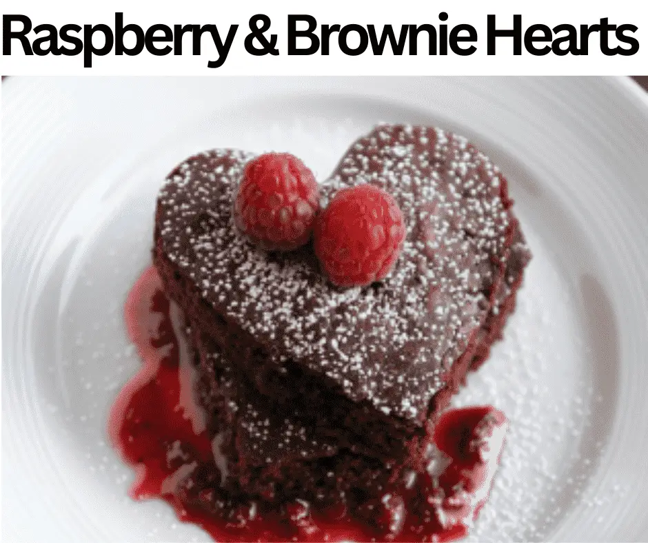 - Before serving, pour the raspberry sauce on all the brownie hearts.