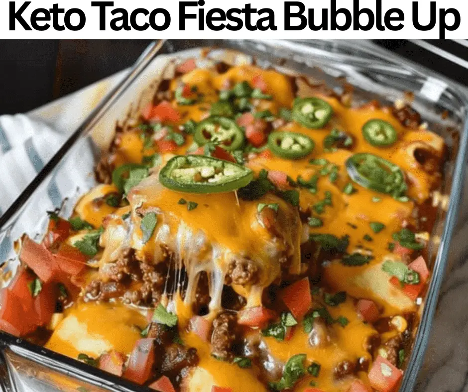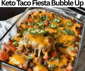 This Keto Taco Fiesta Bubble Up is a tasty & entertaining take on traditional tacos. Combine the cheese, ground beef, & keto biscuit dough to create a filling, low-carb meal that’s simple to prepare & ideal for weeknights. The flavors are strong, spicy, creamy, & somewhat acidic because of the taco spice, tomato sauce, & sour cream. The result is a filling Taco Fiesta Bubble Up casserole that seems decadent but remains keto-friendly as everything bakes together, so it gets brown & bubbling. You can add more cheese for richness or jalapeños for spiciness. It’s also excellent for dinner prep because it reheats nicely & retains its flavor.